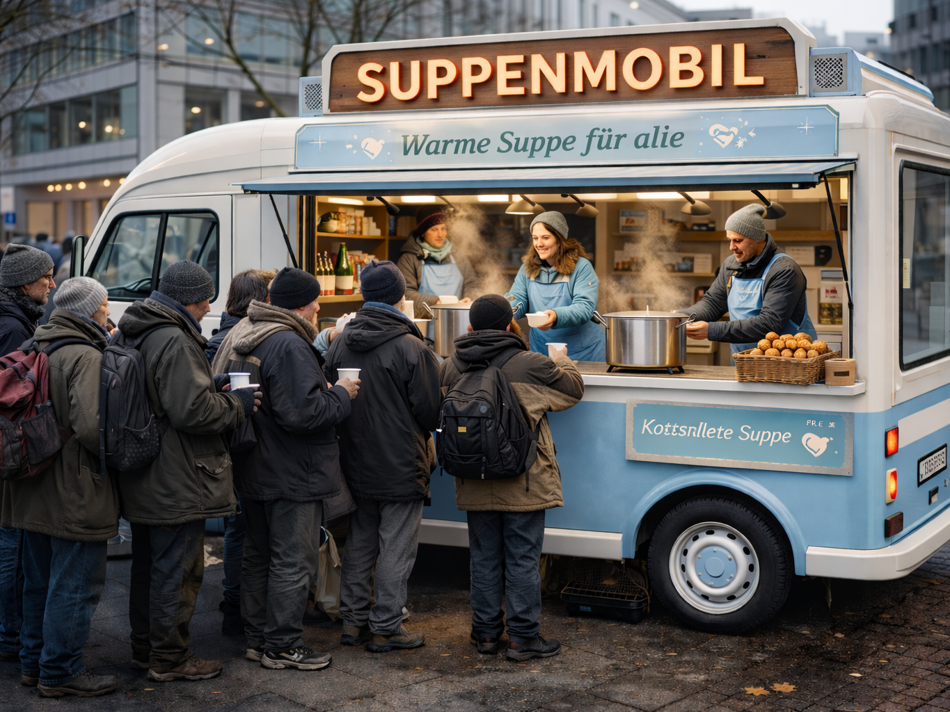 Manchmal braucht es nicht viel.Eine warme Suppe.Ein freundliches Lächeln.Einen Ort, an dem jede*r willkommen ist. Unser Suppenmobil bringt genau das auf die Straße:frisch gekochte, warme Suppe – für alle, ohne Fragen, ohne Hürden.Einfach……