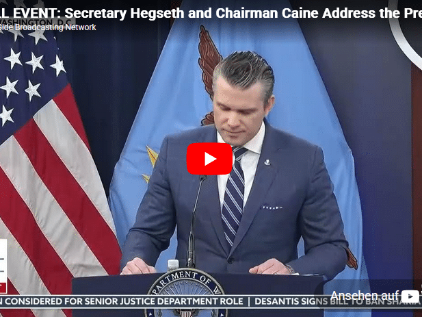 https://www.youtube.com/watch?v=Ylw7MI1ST8s Secretary Hegseth and Chairman Caine Address the Press after Iran Ceasefire. April 8, 2026 Join this channel to get access to perks: Stay in the loop with the latest coverage from Right Side Broadcasting…