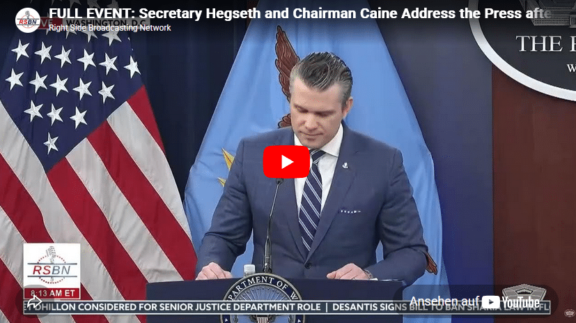 Secretary Hegseth and Chairman Caine Address the Press after Iran Ceasefire. April 8, 2026 Join this channel to get access to perks: Stay in the loop with the latest coverage from Right Side Broadcasting Network! Head to rsbnetwork.com/newsletter and download our new mobile app to get breaking news updates for Trump rallies and more.