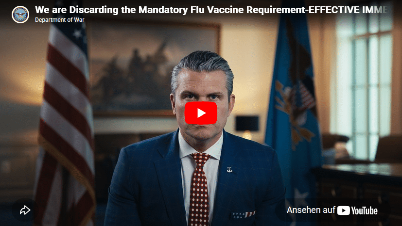The War Department is once again restoring freedom to our Joint Force. We are discarding the mandatory flu vaccine requirement, effective immediately. For more on the Department of War–SUBSCRIBE @deptofwar