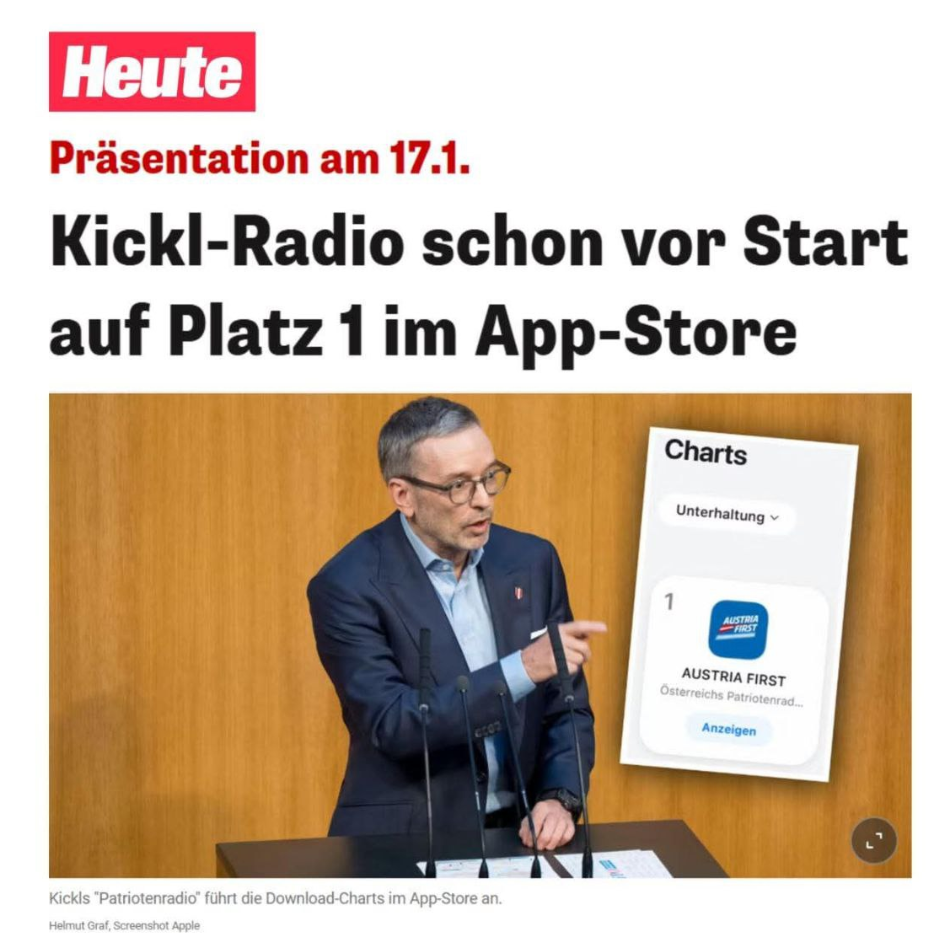 Wenn Herbert Kickl beim traditionellen Neujahrsempfang der FPÖ am Samstag in Klagenfurt symbolisch den Startknopf drückt, geht mit „Austria First“ Österreichs erster patriotischer Radiosender on air. Klare Kante statt Meinungseinheitsbrei…